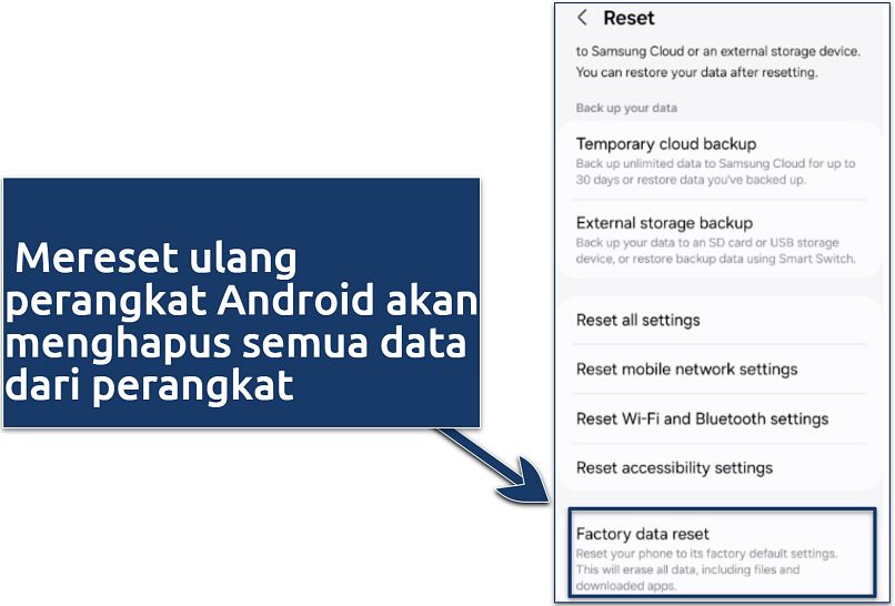 - Android. Masuk ke Pengaturan > Pengaturan Umum > Reset > Reset Data Pabrik > Hapus Semua Data.