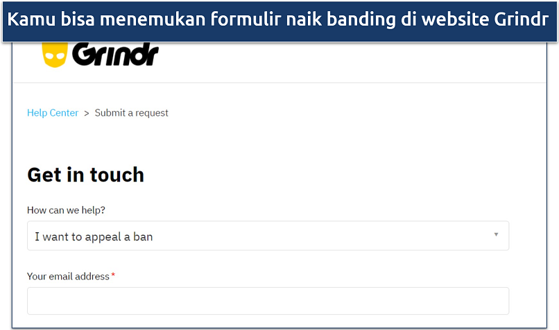 Jika kamu merasa pemblokiran tersebut tidak adil, ajukan banding. Hubungi layanan dukungan Grindr yang berisi penjelasan singkat mengapa pemblokiran kamu harus dipertimbangkan kembali. Sertakan bukti apa pun yang bisa menunjukkan kepatuhan kamu terhadap aturan mereka atau kesalahpahaman yang mungkin terjadi.